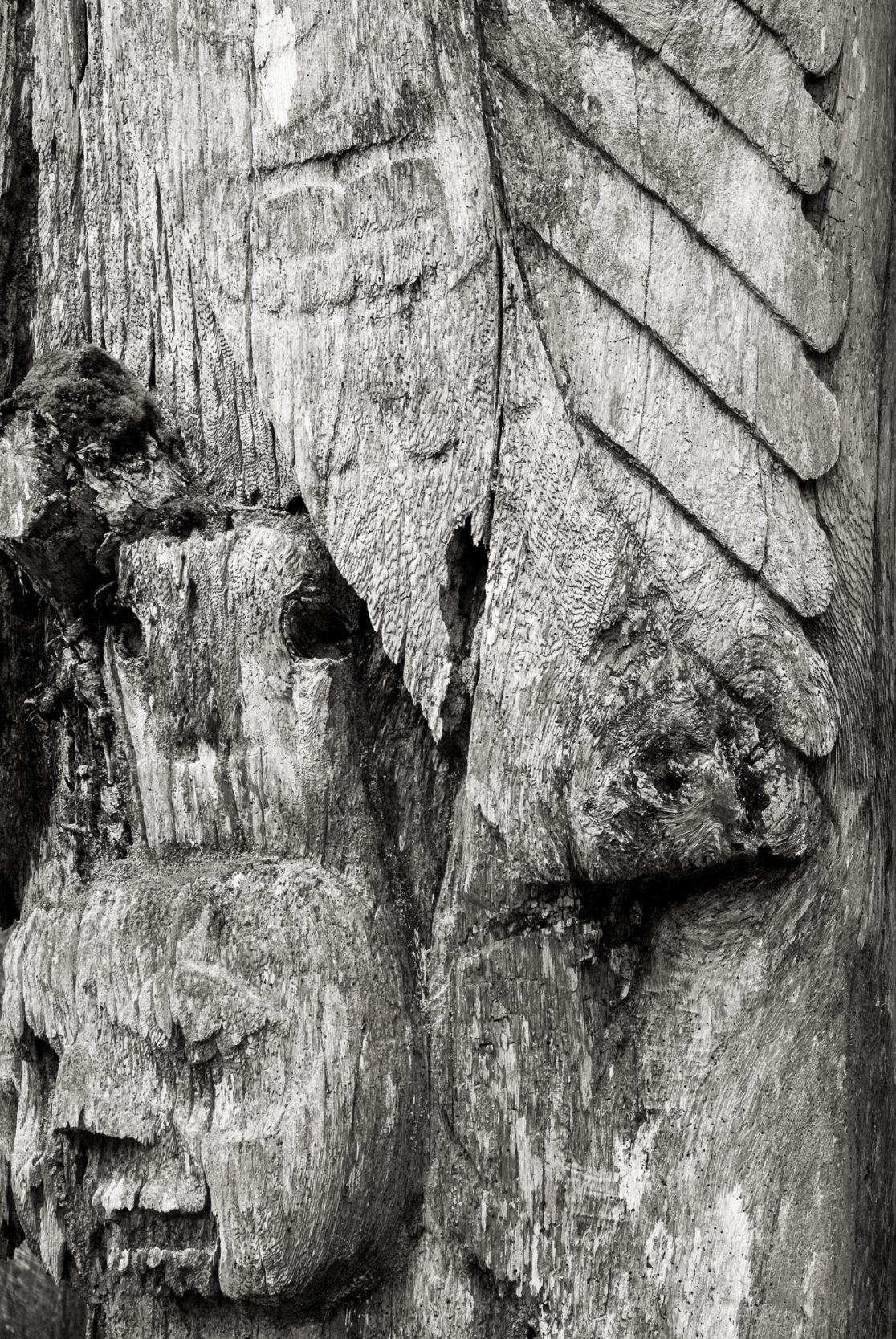On a voyage to Haida Gwaii - the islands off the central coast of British Columbia - in 2011, I experienced the visceral connection between art and nature. Haida totems of great beauty are carved and erected with cultural purpose and allowed to live and then decay like all beings. The islands are scattered with the remains of their endemic fauna - eagles, bears, deer - creatures which have cultural significance for the Haida people, and which are carved, in stylized form, on the totems.