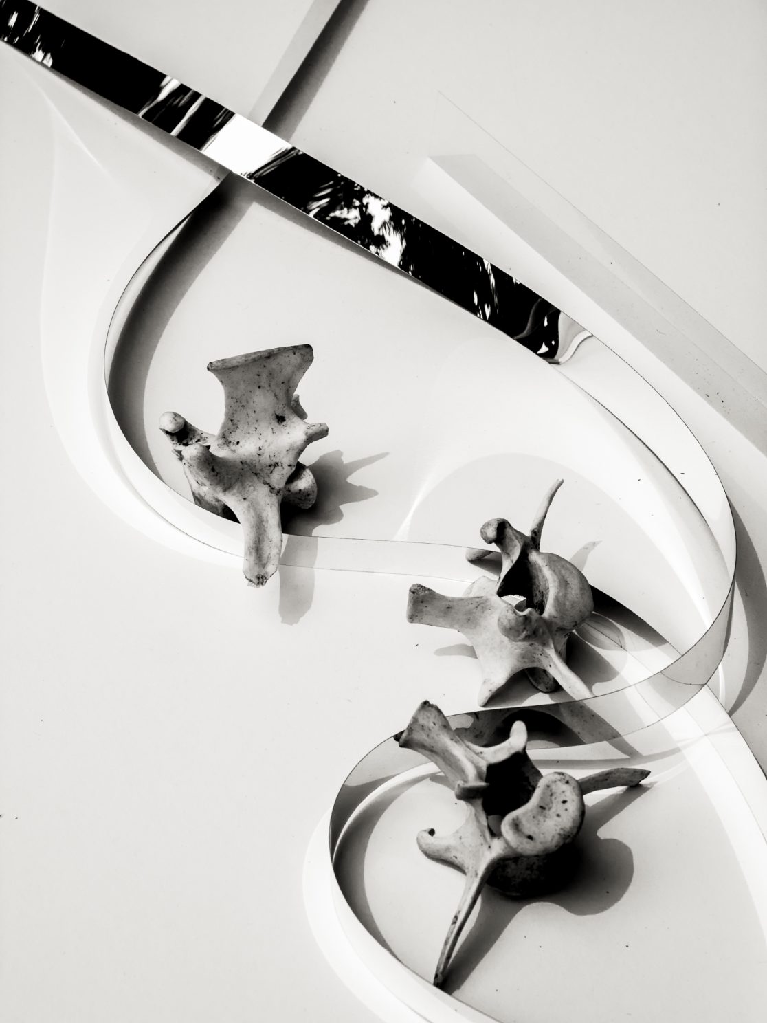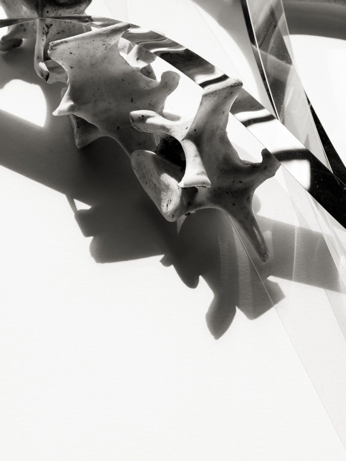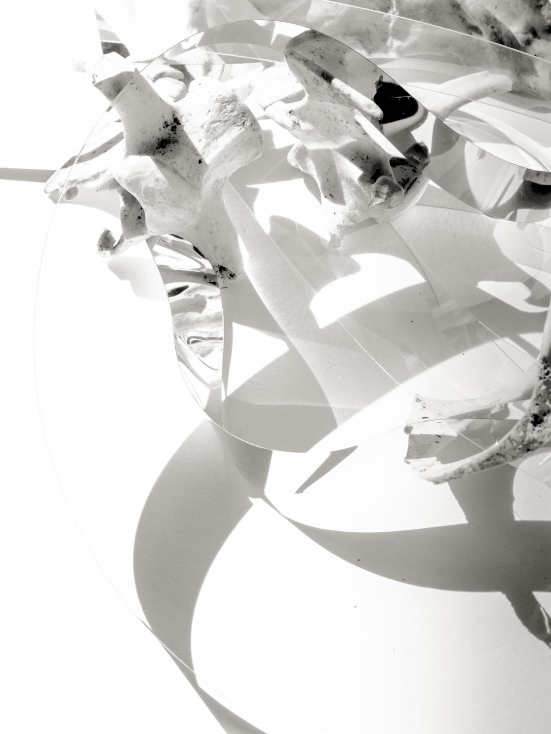 My island has a large deer population, and finding skeletal remains of them is a common experience. This series is a celebration of life through observing the articles of death in the radiance of the midsummer sun, the dramatic shadows projected by it, and movement suggested by reflections.